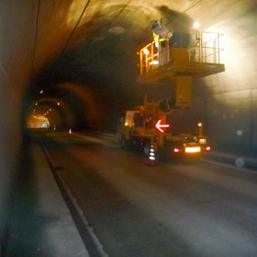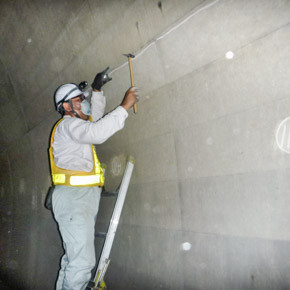 トンネルに異常や変状が見られないか、点検を行なっています。