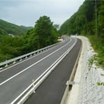 写真は広島県三次市作木町に位置する一般国道375号で、歩行者と車両を分離することによる安全確保、高次医療施設へのアクセス向上、地域間交流の促進など、日々利用されている生活道路としての機能向上に配慮した設計を行っています。
